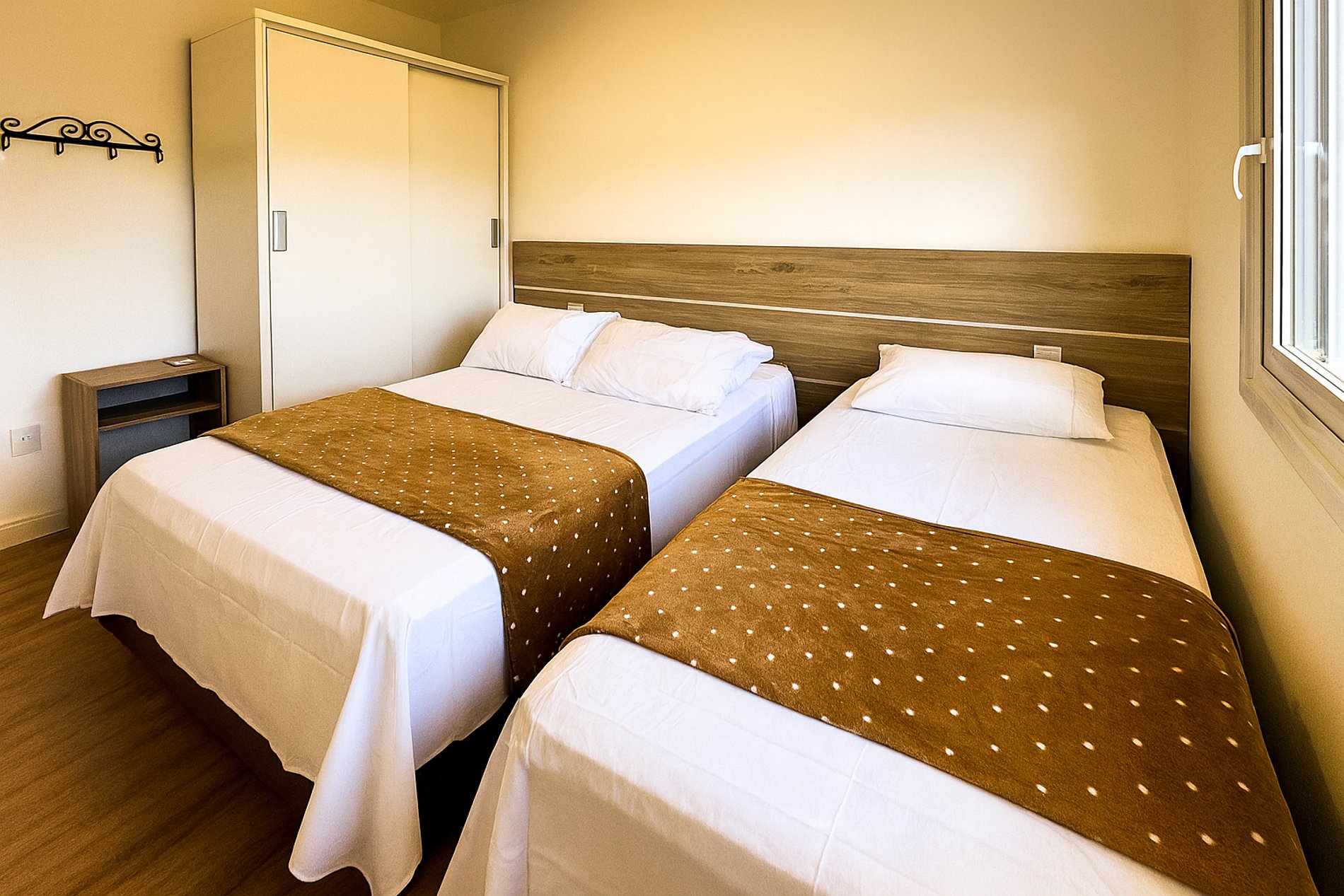 - Travesseiros e cobertas (as camas são montadas conforme o número de hóspedes informado na reserva).