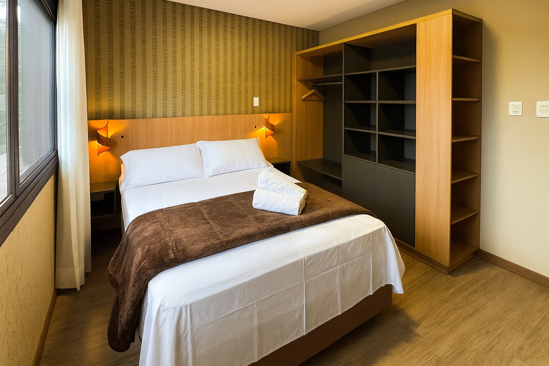 O hóspede realiza o check-in por conta própria, com total liberdade para chegar no horário que preferir — uma facilidade que torna a experiência ainda mais prática e confortável.
