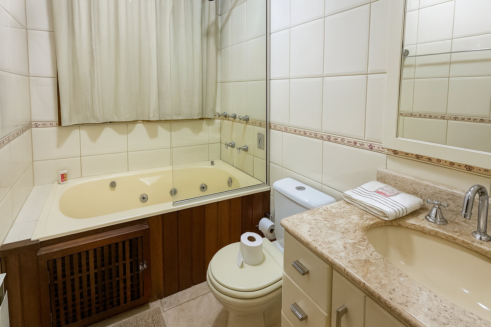 - 01 Rolo de papel higiênico por banheiro/lavabo (sem reposição durante a estadia).