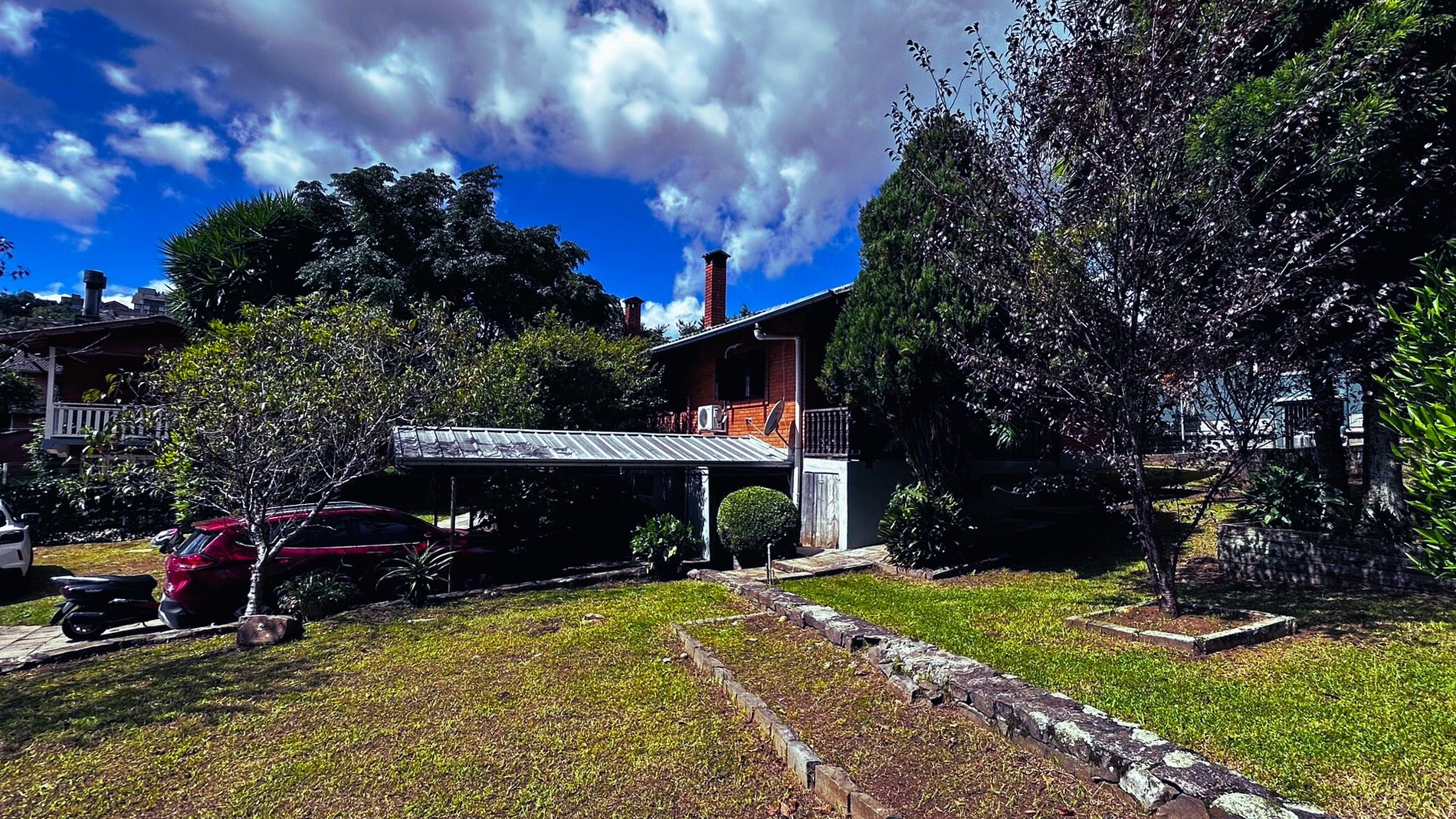 Casa completa no Centro de Gramado. A Casa conta com uma ampla área verde no Centro, com vaga de garagem, espaço para festas e muito mais. A casa possui 3 quartos com beliches e camas de casais, que ao todo comportam 10 hóspedes. Possui ar condicionado em todos os cômodos, que além de resfriarem o ambiente podem esquentá-los. A cozinha possui todos os utensílios e eletrodomésticos, necessários para que possam ter uma estadia completa. Por fim uma área de serviço com máquina de lavar roupa.