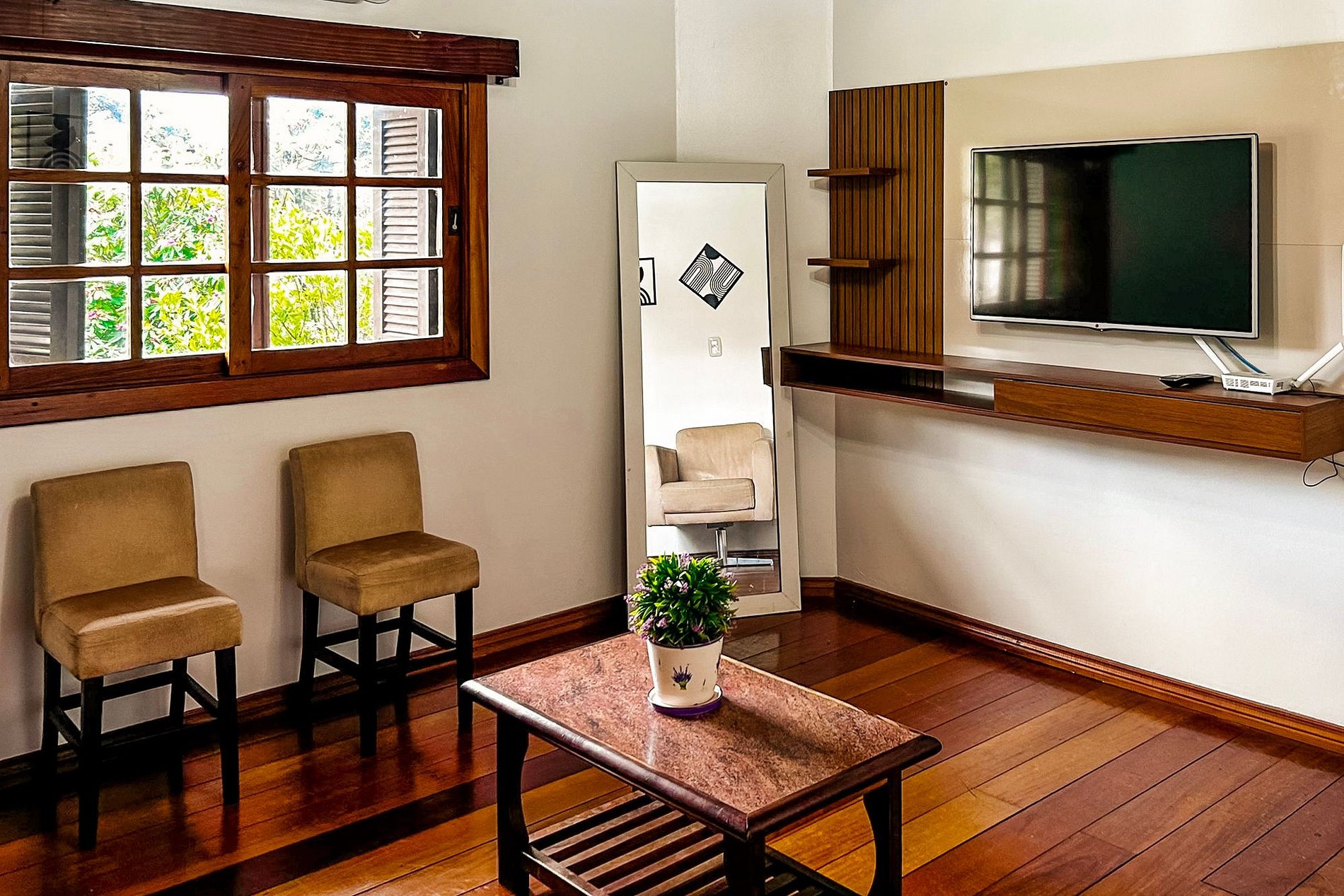 O hóspede realiza o check-in por conta própria, com total liberdade para chegar no horário que preferir — uma facilidade que torna a experiência ainda mais prática e confortável.