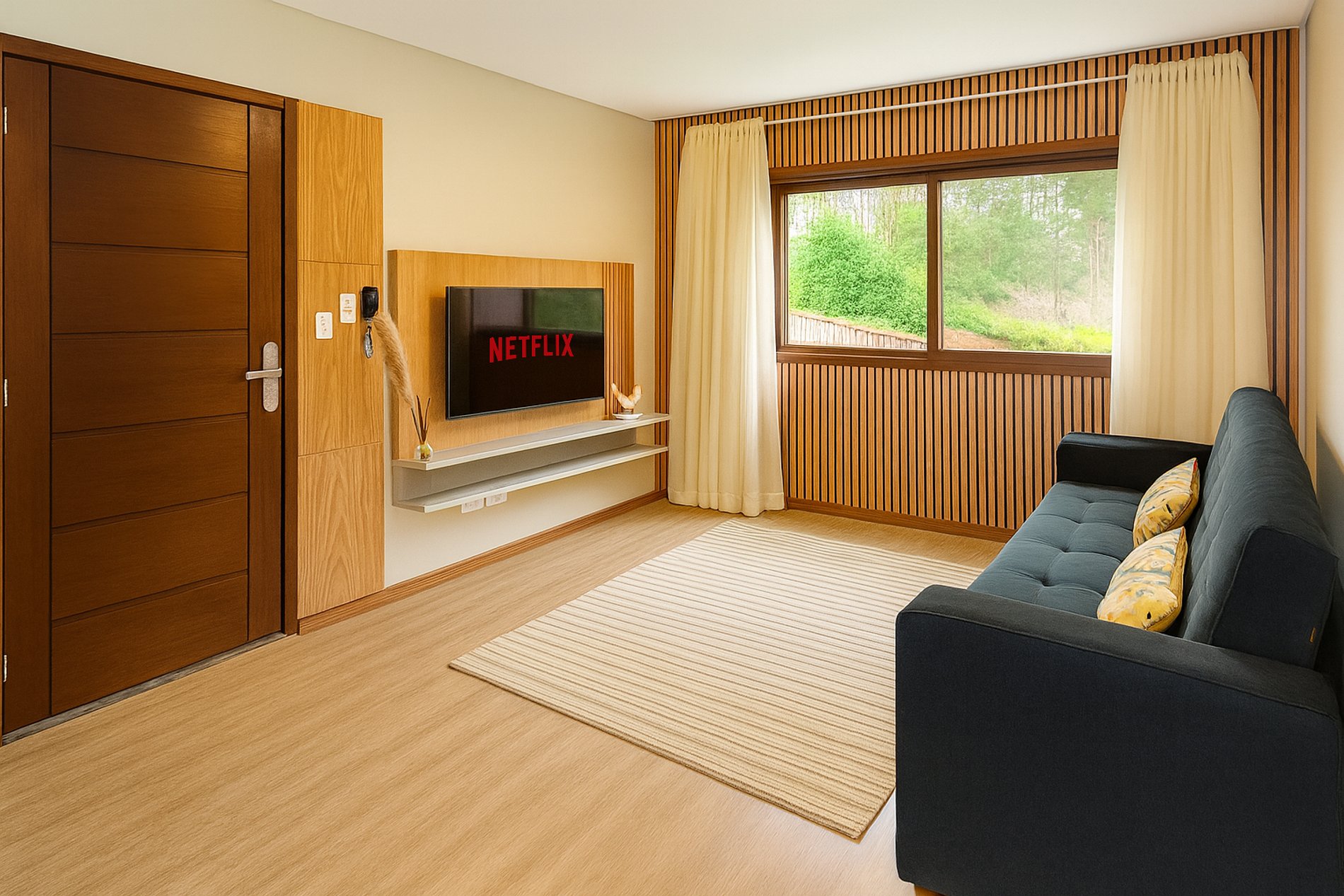 O hóspede realiza o check-in por conta própria, com total liberdade para chegar no horário que preferir — uma facilidade que torna a experiência ainda mais prática e confortável.