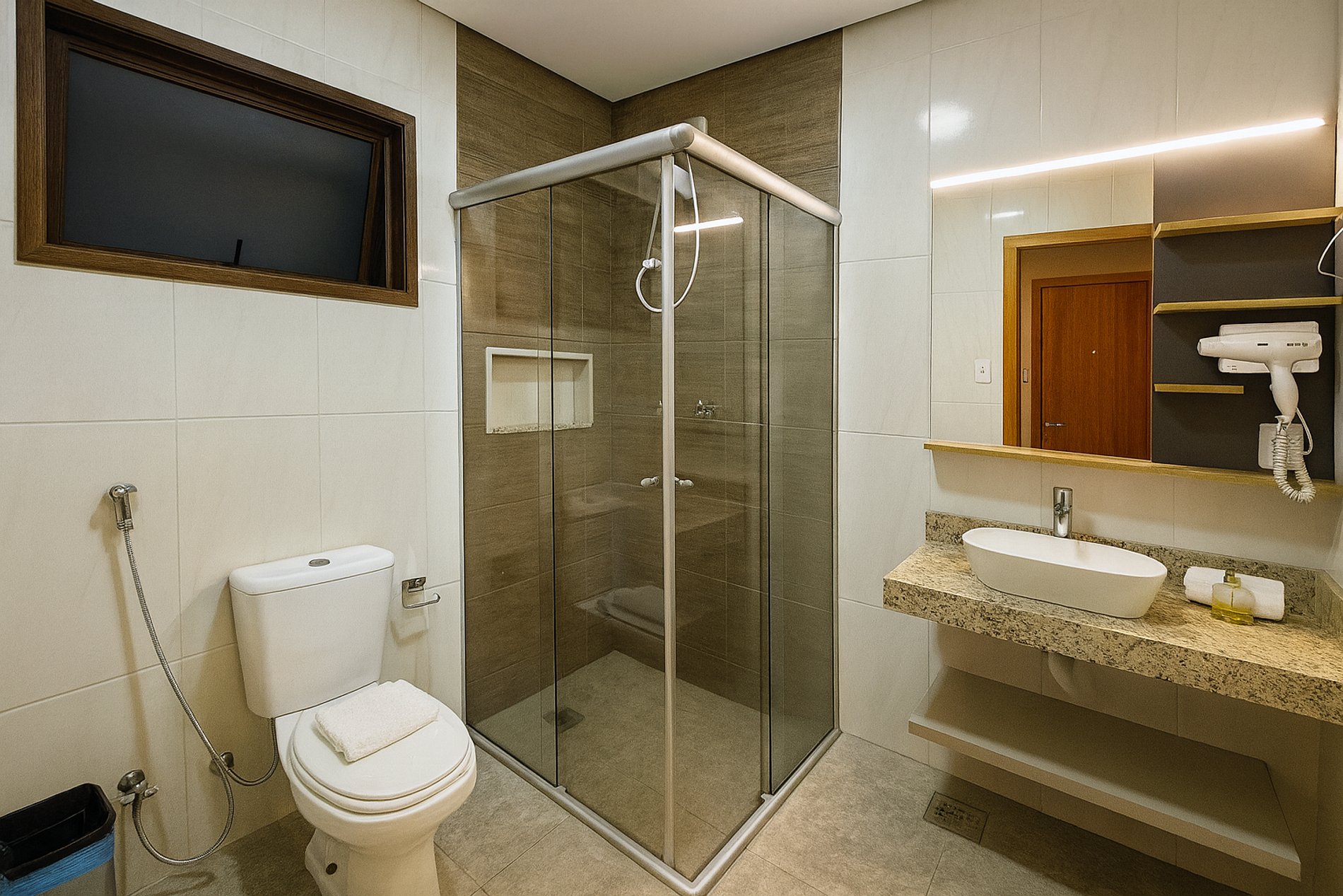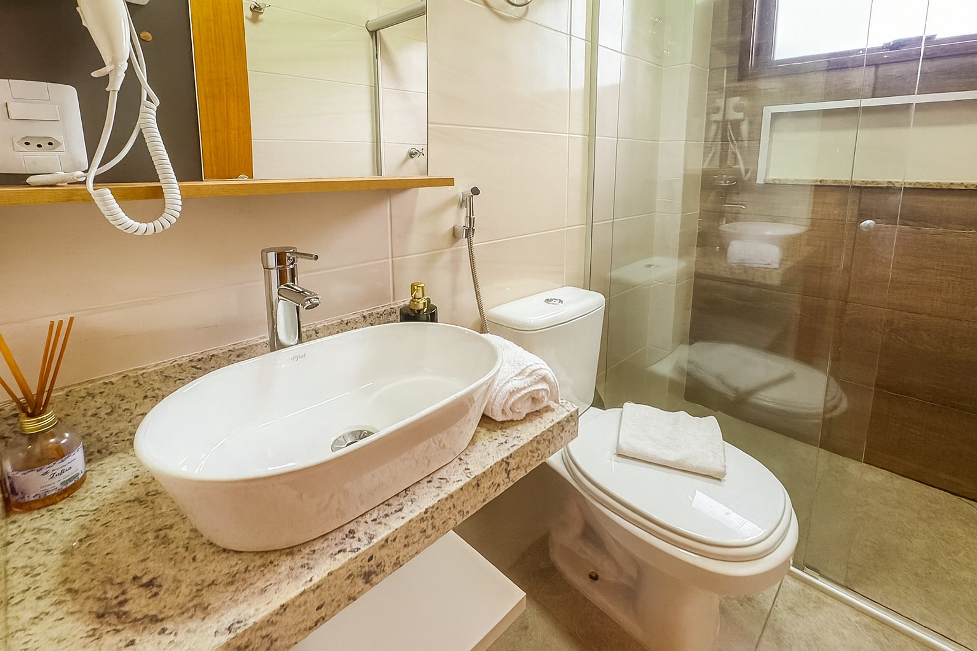 - 01 Toalha de rosto por banheiro. (sem reposição durante a estadia).
