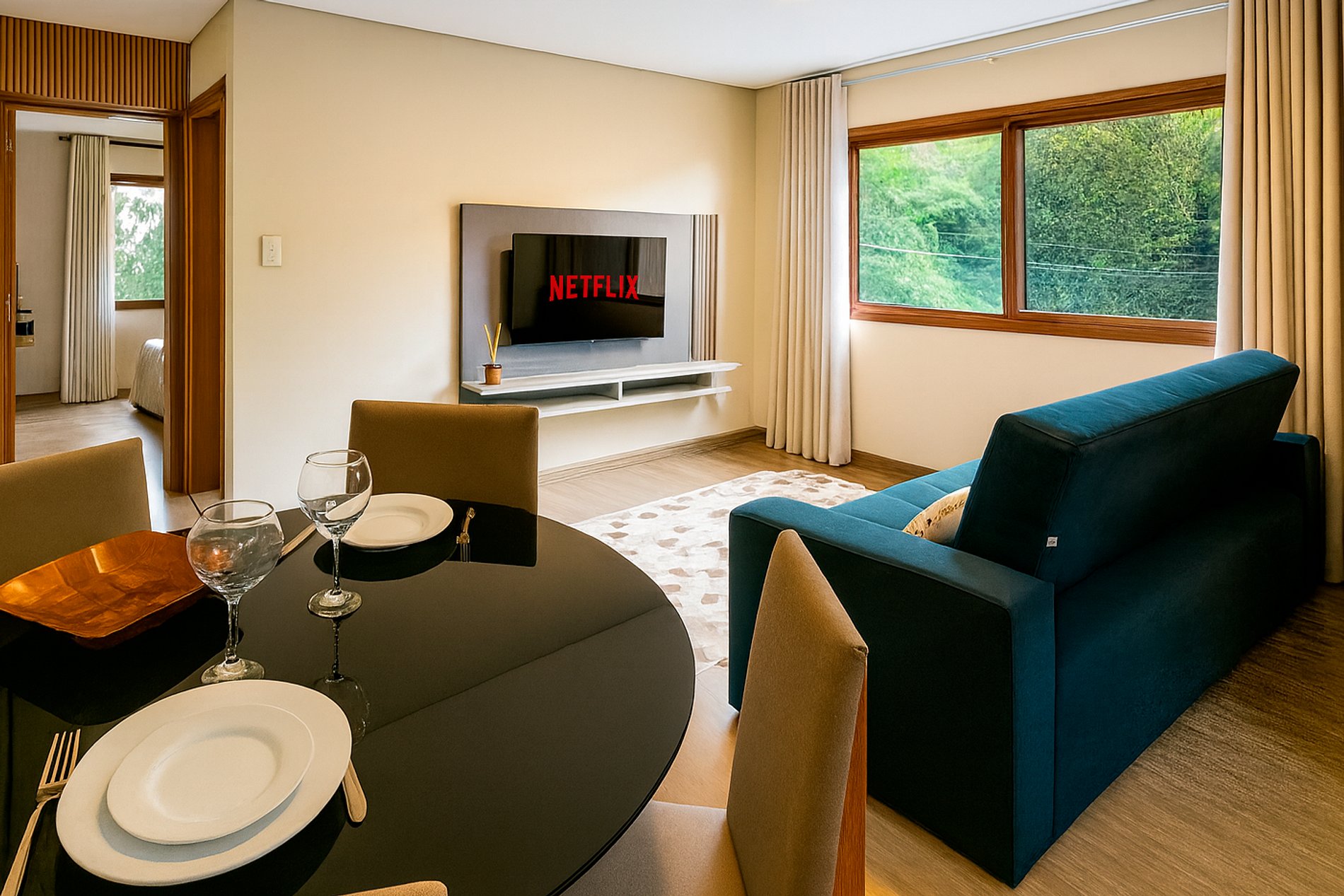 O apartamento oferece uma estadia inigualável em Gramado, com ambientes planejados para proporcionar conforto e exclusividade!