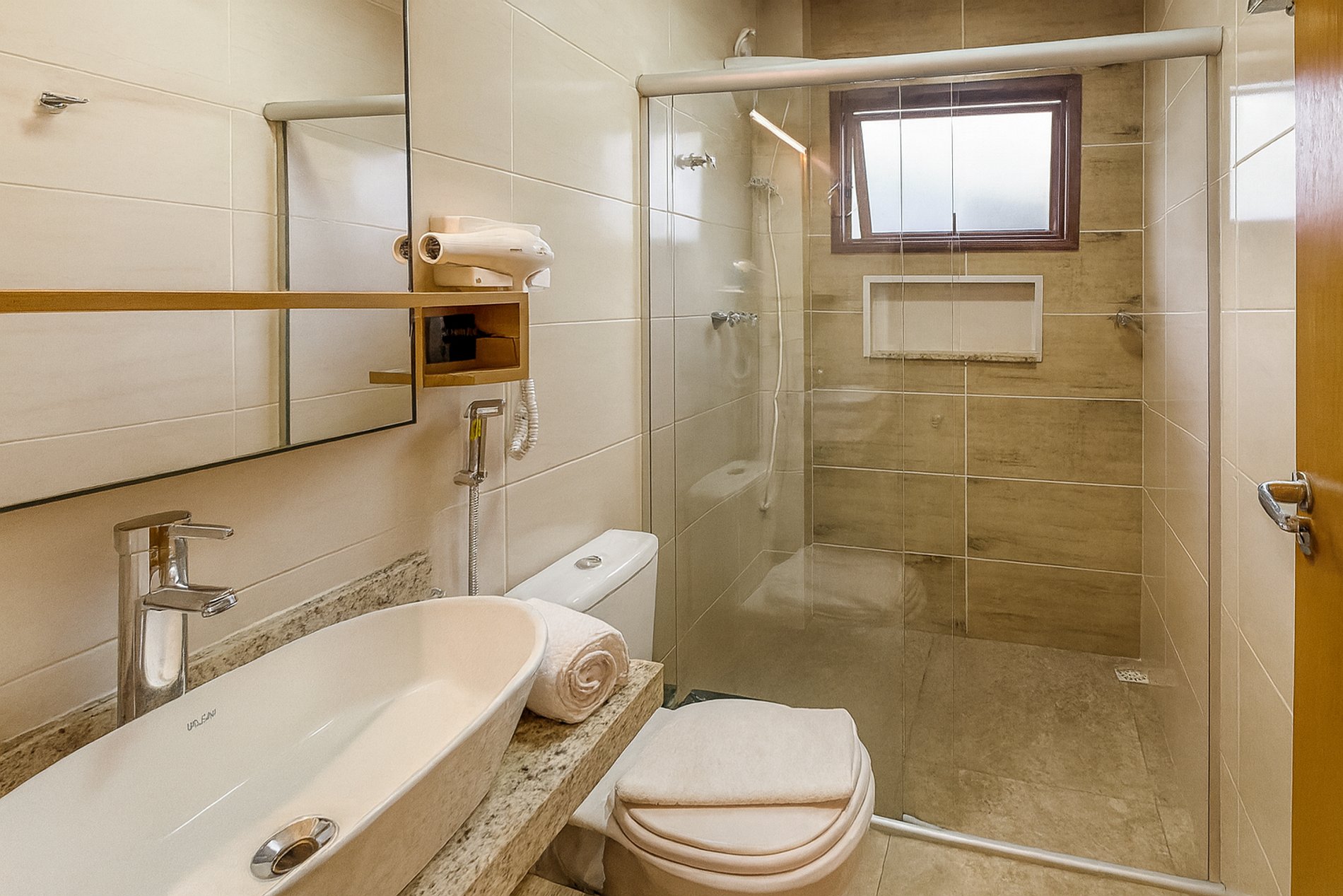 - 01 Rolo de papel higiênico por banheiro/lavabo (sem reposição durante a estadia).