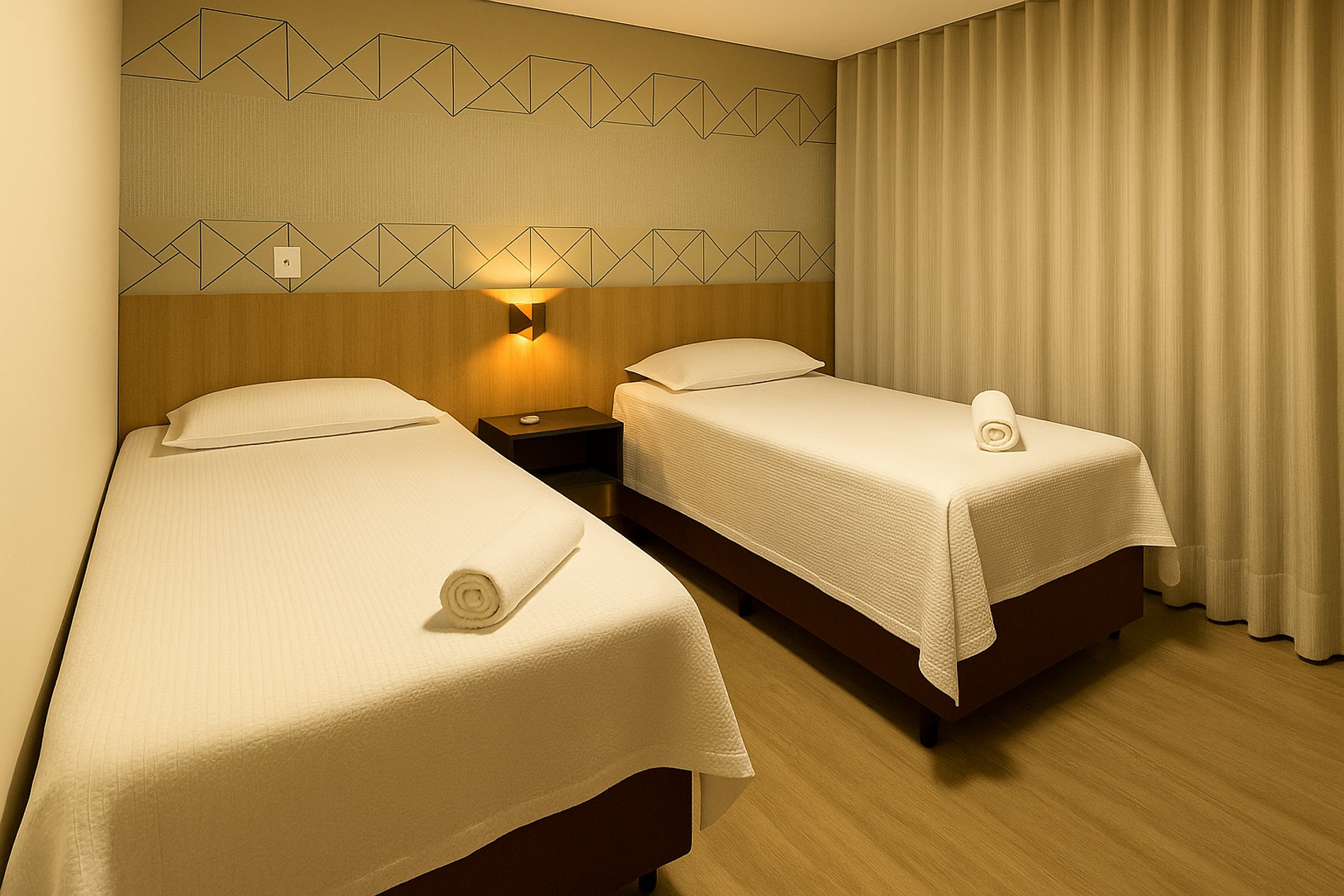 - Travesseiros e cobertas (as camas são montadas conforme o número de hóspedes informado na reserva).