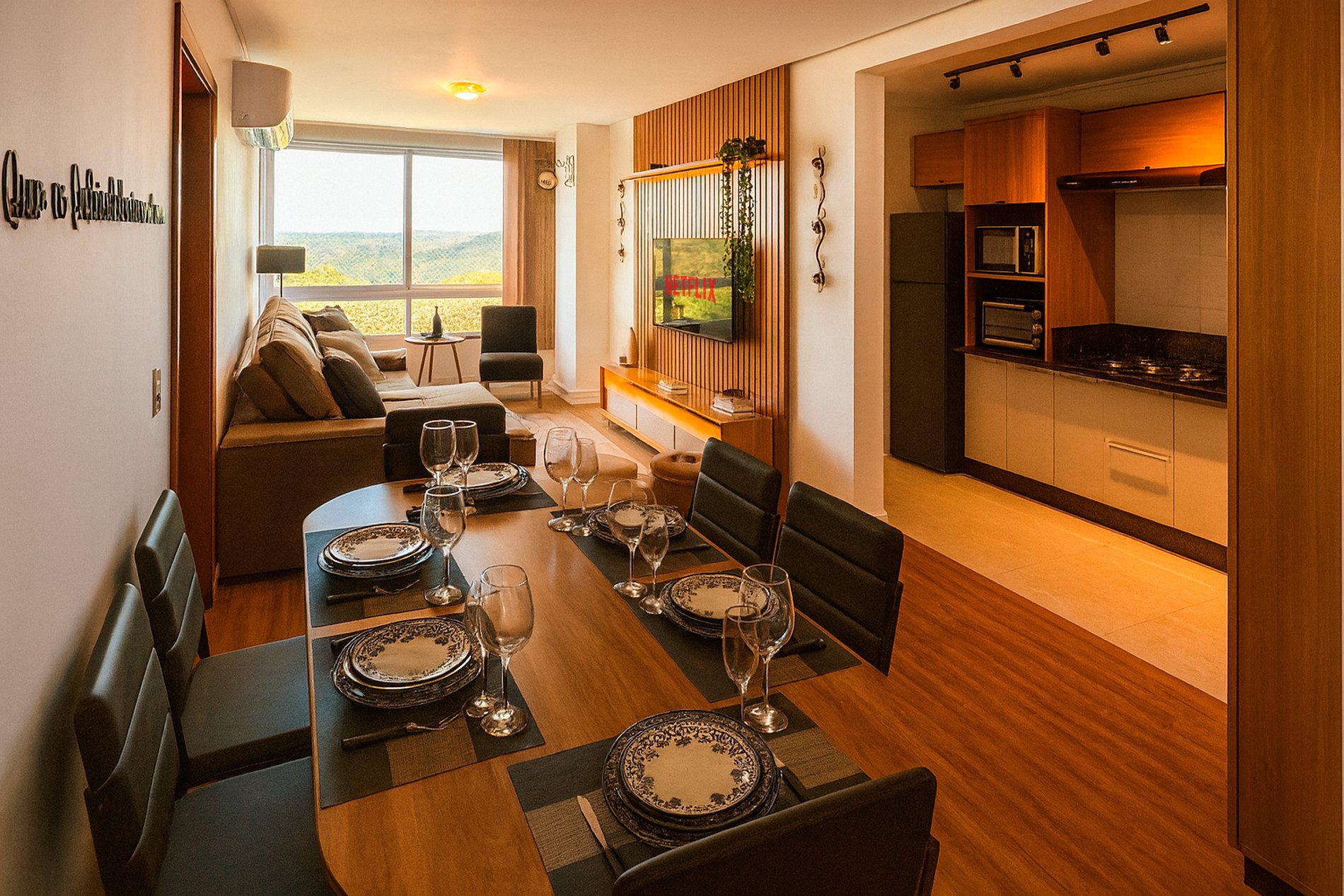 O apartamento oferece uma estadia inigualável em Gramado, com ambientes planejados para proporcionar conforto e exclusividade!