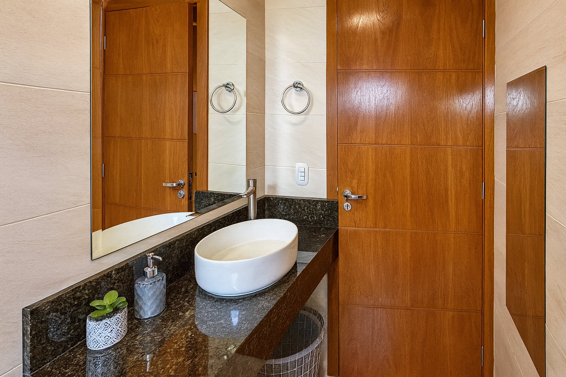 - 01 Rolo de papel higiênico por banheiro/lavabo (sem reposição durante a estadia).