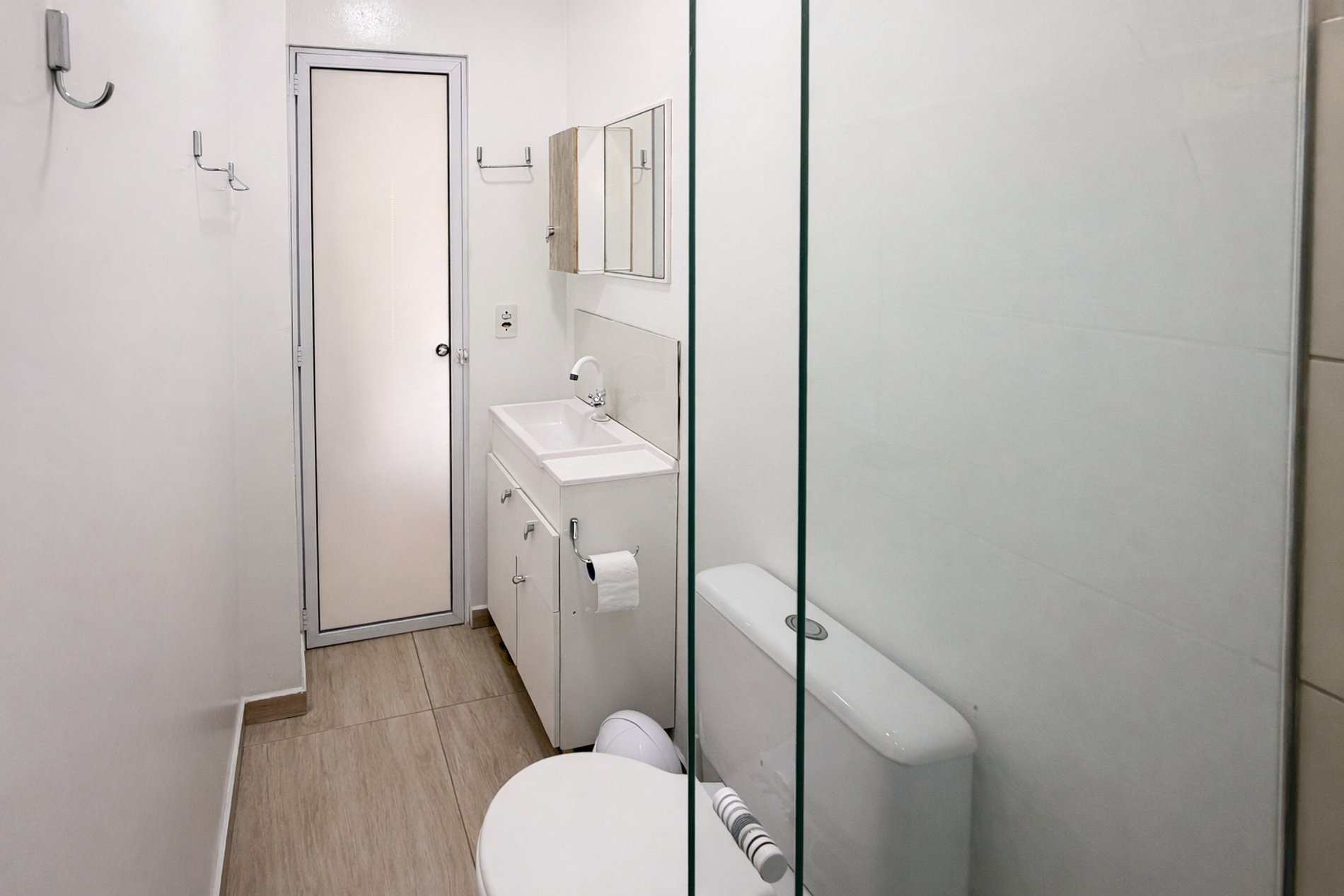 - 01 Rolo de papel higiênico por banheiro/lavabo (sem reposição durante a estadia).