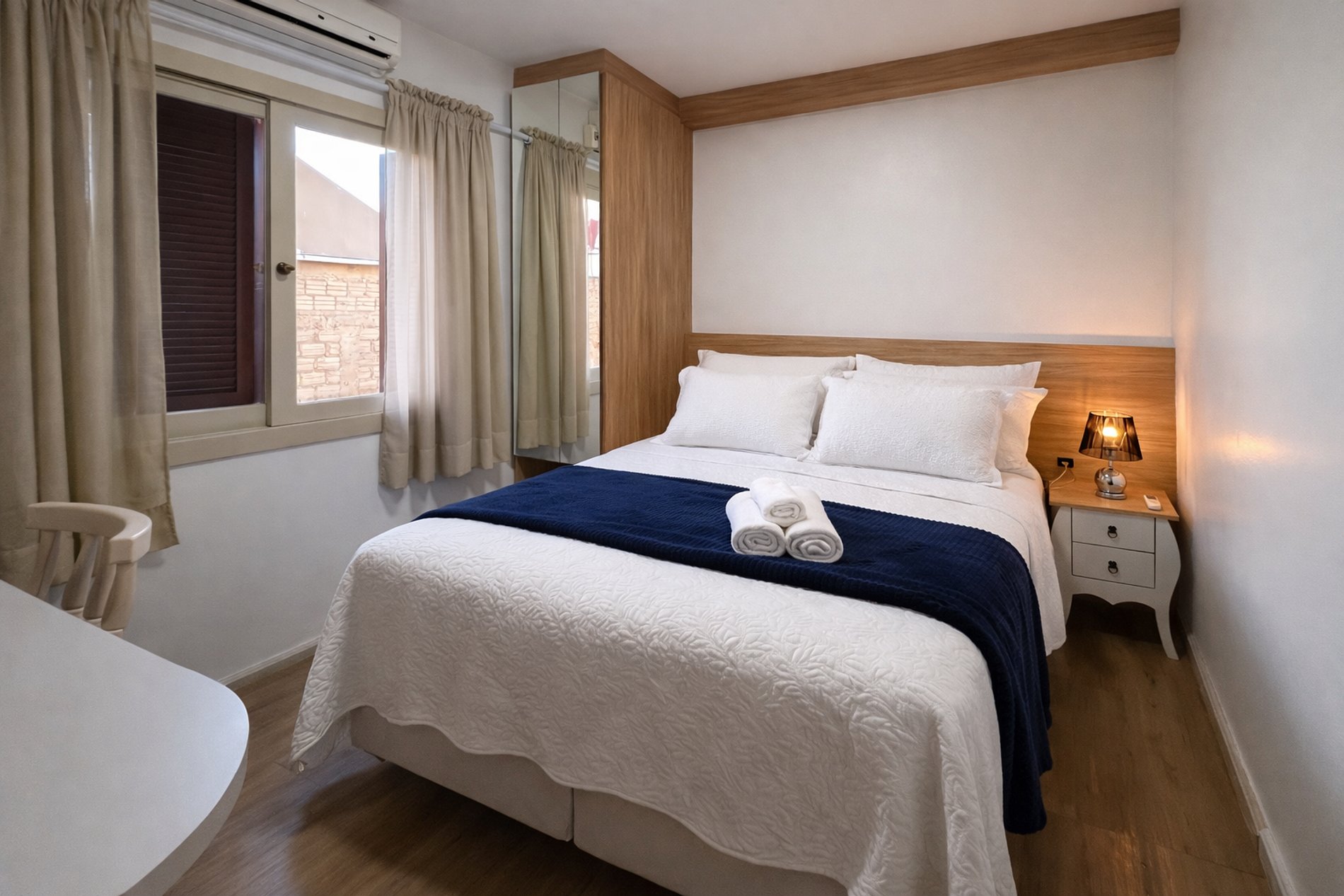 Apartamento aconchegante no coração de Gramado, ao lado da famosa Rua Coberta — a localização mais privilegiada da cidade. Faça tudo a pé e aproveite restaurantes, cafés, lojas e as principais atrações turísticas a poucos passos. Espaço completo, confortável e bem equipado, ideal para casais ou famílias que buscam praticidade e uma experiência única no centro de Gramado.