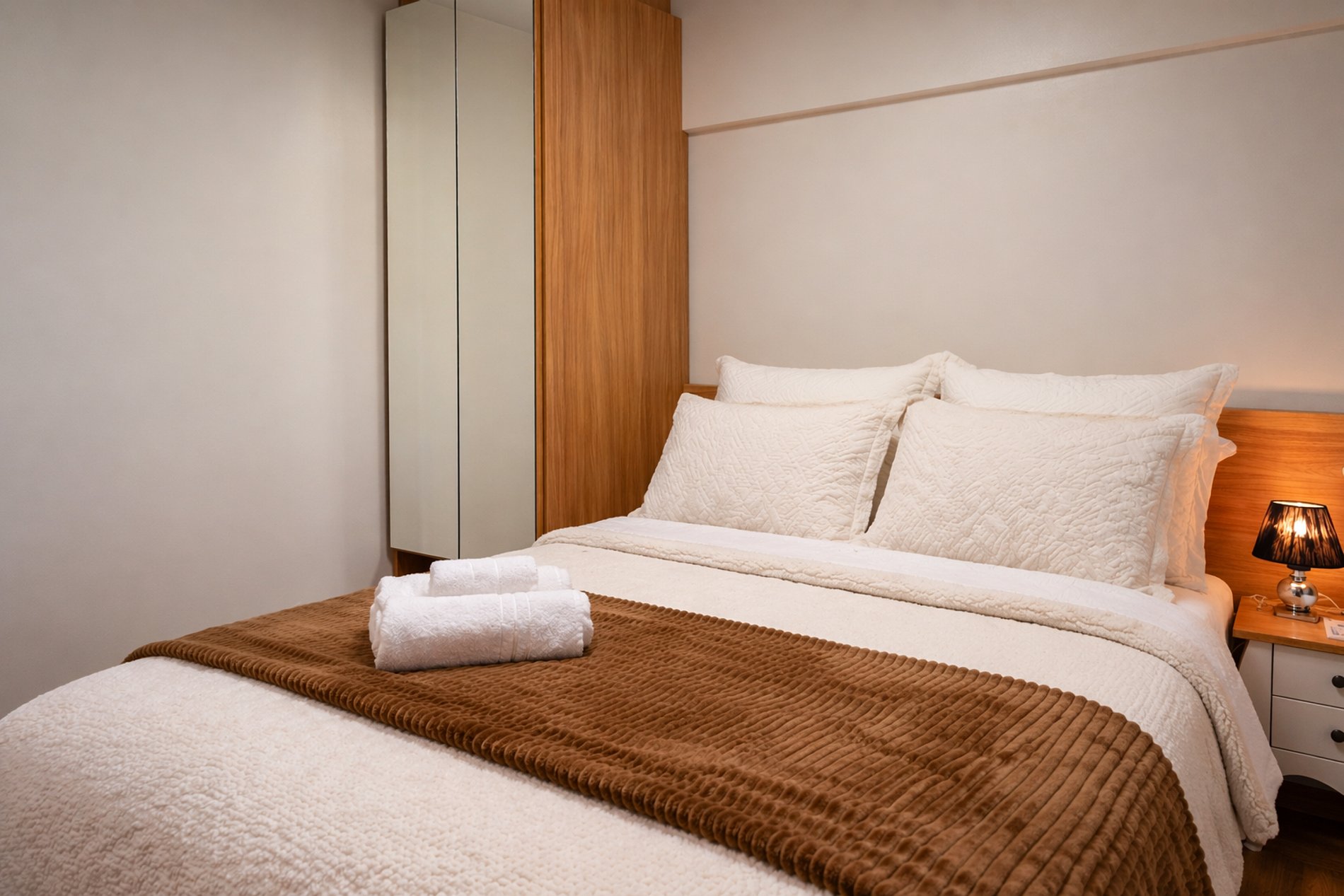 O hóspede realiza o check-in de forma autônoma, podendo chegar no horário que preferir — uma facilidade que torna a experiência mais prática e confortável.