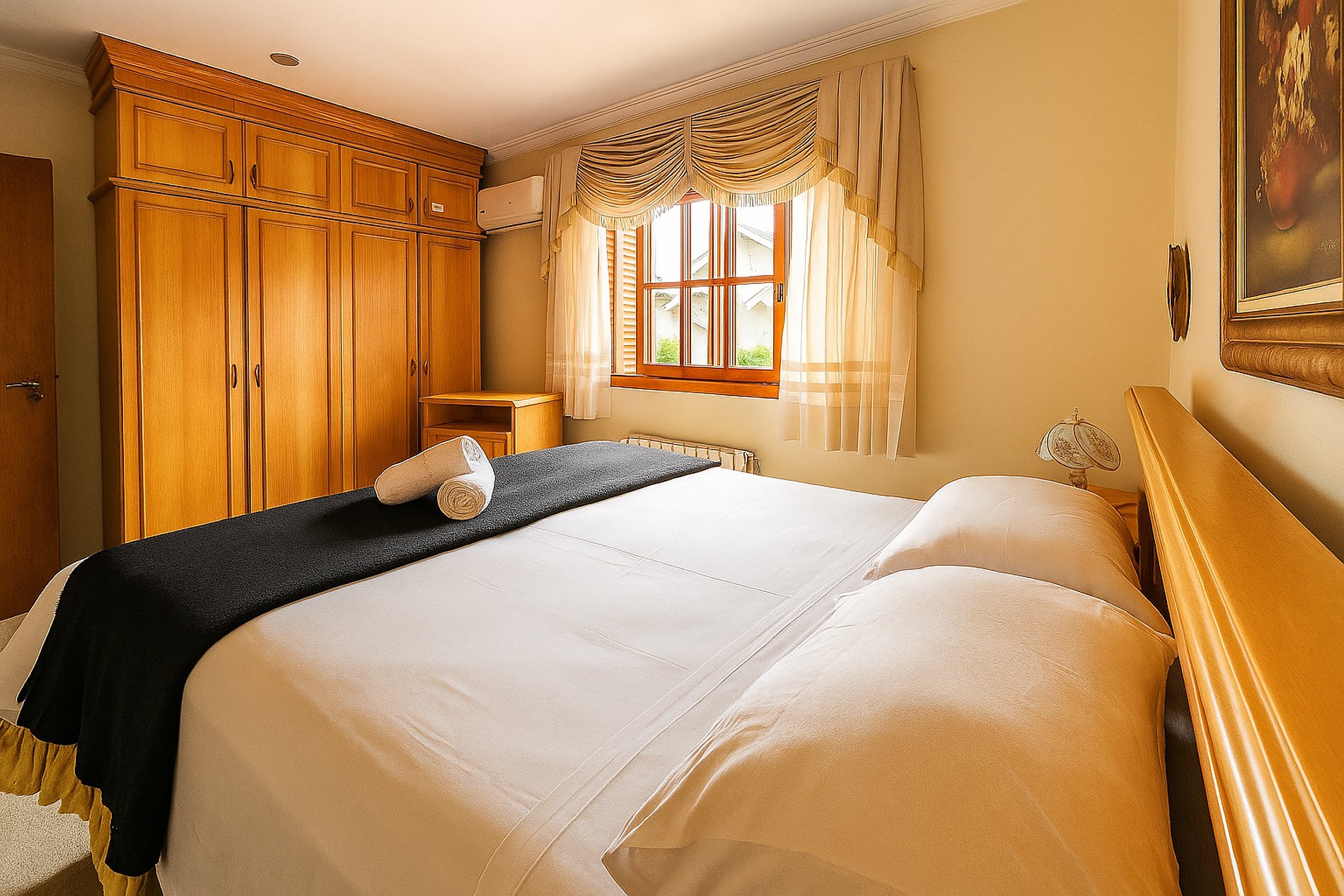 Apartamento muito bem localizado no Centro de Gramado. Próximo à várias atrações da cidade. O apartamento conta com uma infraestrutura impecável, com utensílios, eletrodomésticos, roupas de cama e banho. Dispõe de 02 quartos com cama de casal, sendo 01 suíte e também com ar condicionado em ambos. Cozinha completa com churrasqueira e muito mais.