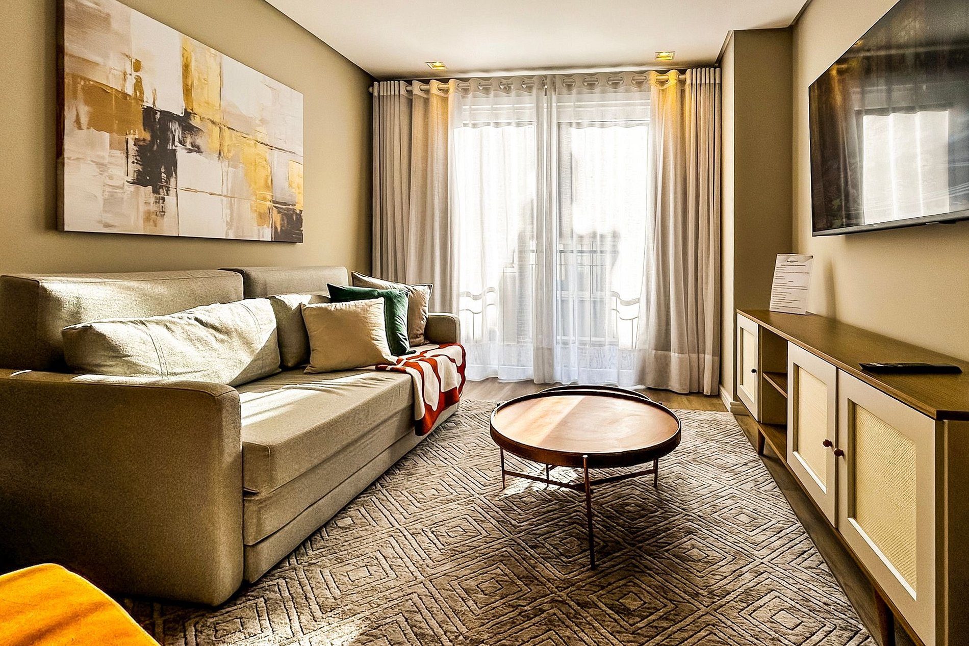 Apartamento luxuoso em Gramado, localizado em uma região tranquila da cidade, ideal para quem busca conforto e descanso, mas ainda perto das principais atrações.