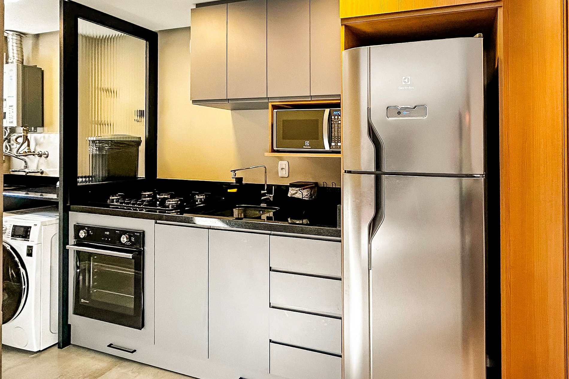 Apartamento Completo, com uma decoração diferenciada, com todos os utensílios de cozinha, cama e banho