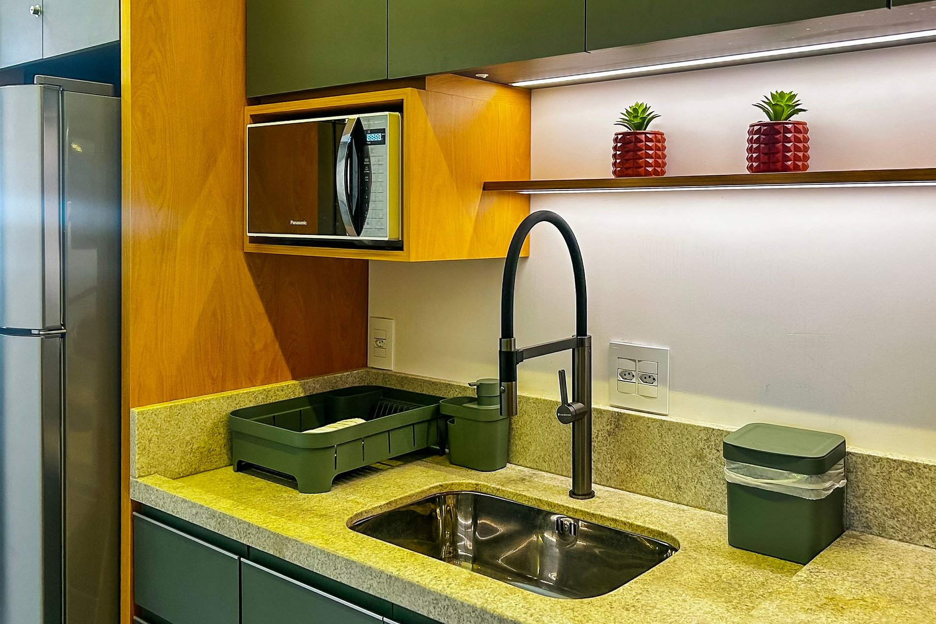 O Apto oferece uma estadia inigualável, com uma infraestrutura que combina modernidade, estilo e conforto. Dispomos de todos os equipamentos para você preparar suas refeições, desde um café da manhã completo, até mesmo um maravilhoso churrasco no jantar, lhe oferecemos tranquilidade, praticidade e modernidade, tudo isso em um só lugar !