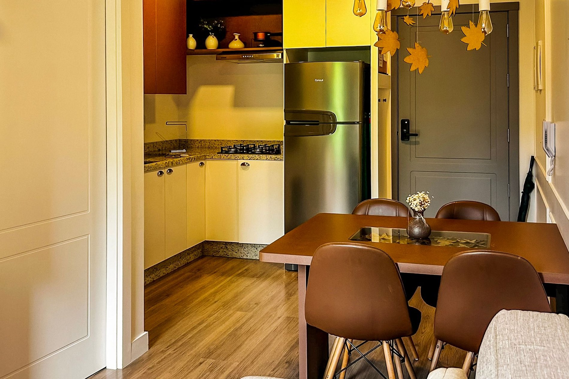 O Apto Plátanos Gramado foi inspirado nas folhas dos Plátanos, que decoram as belas paisagens da Serra Gaúcha. Os ambientes foram planejados para proporcionar uma estadia confortável e única!