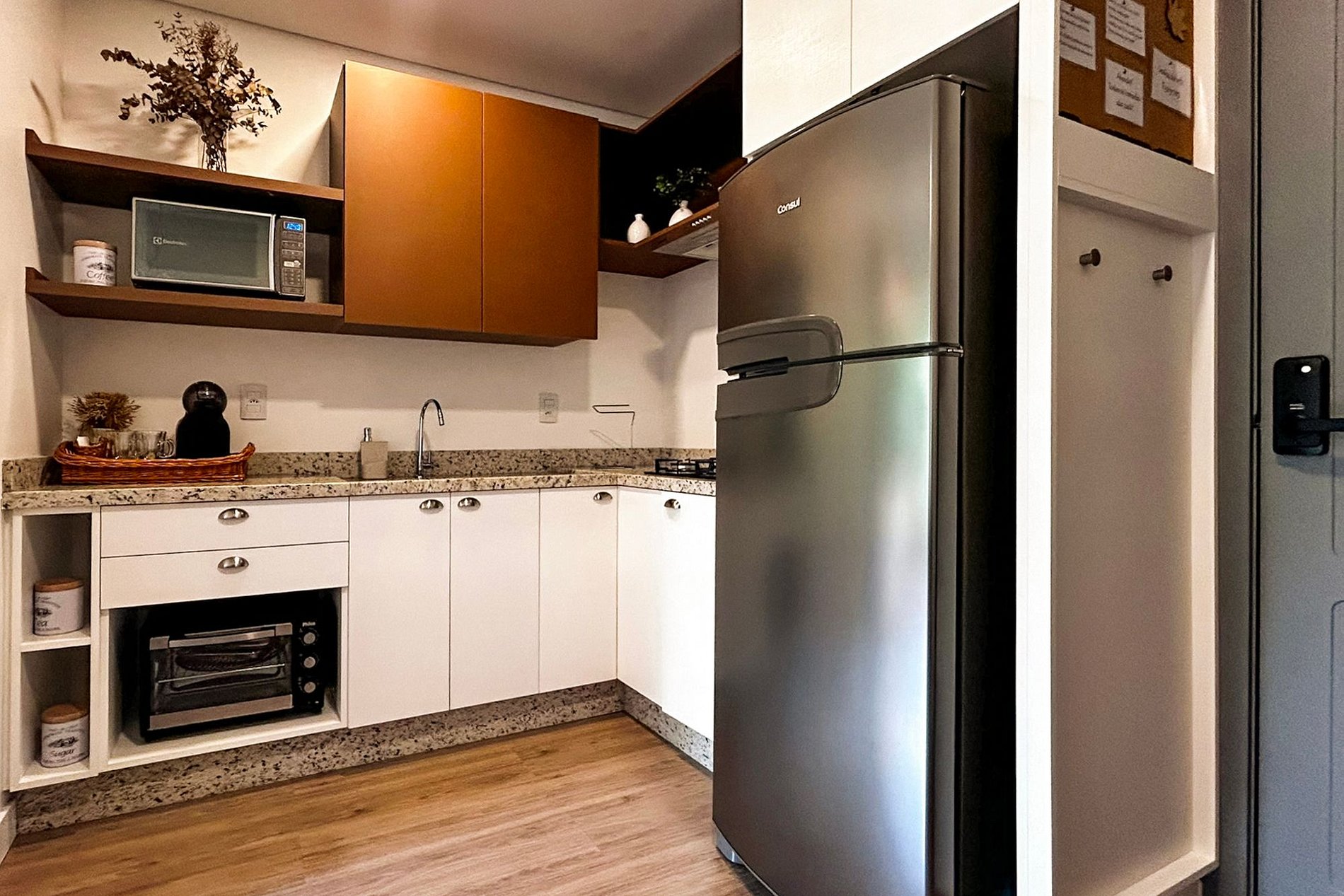 O hóspede realiza o check-in por conta própria, com total liberdade para chegar no horário que preferir — uma facilidade que torna a experiência ainda mais prática e confortável.