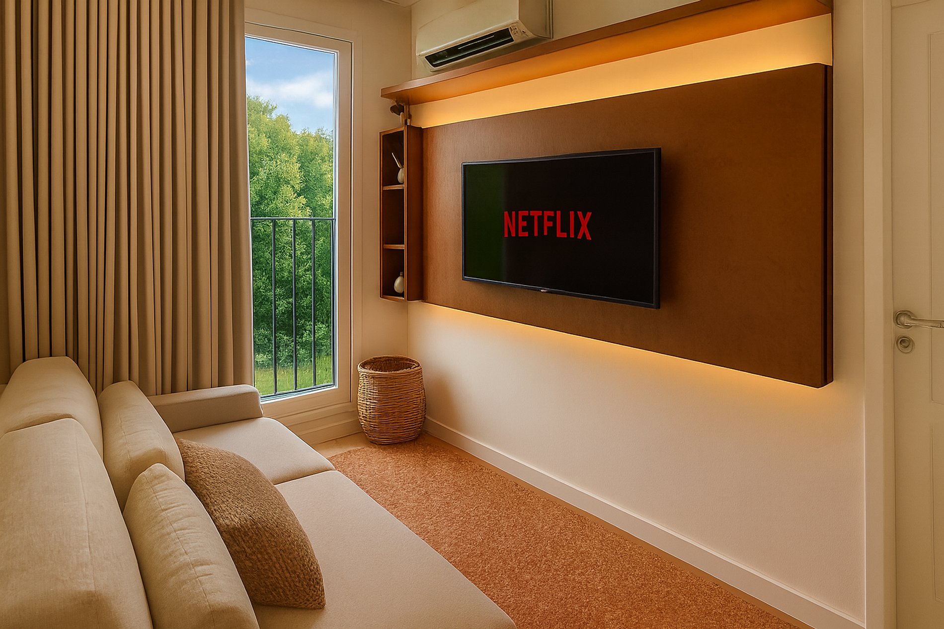 - TV Smart com acesso aos principais aplicativos de streaming.